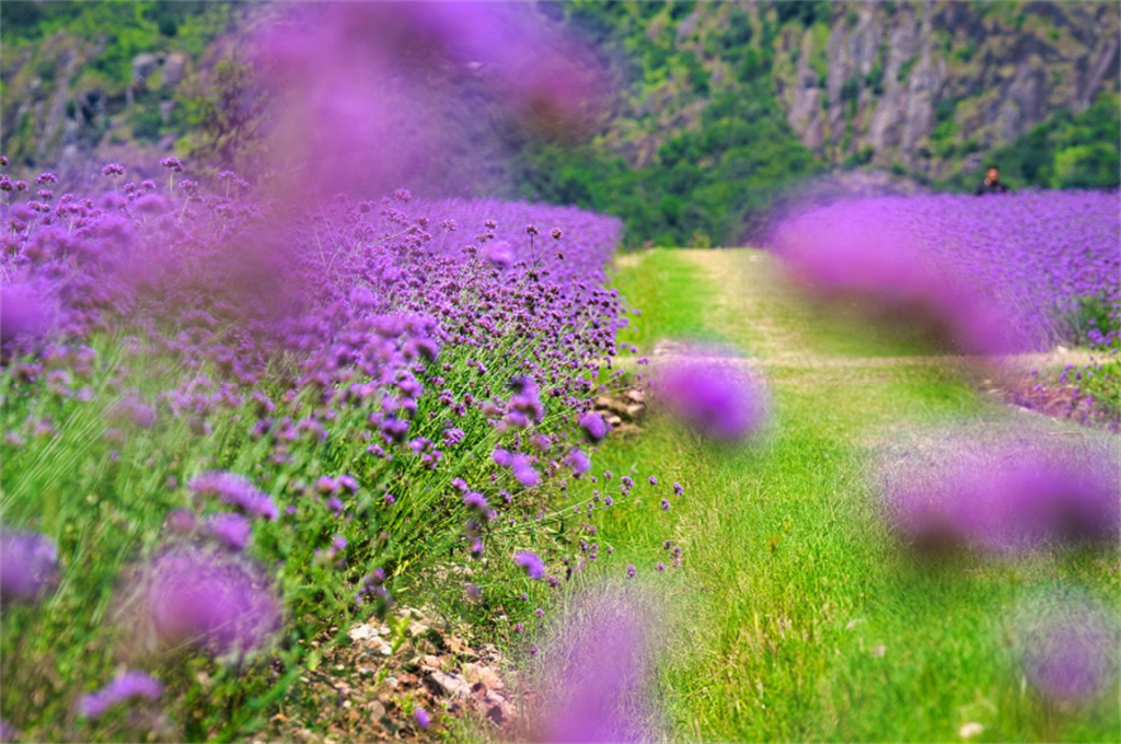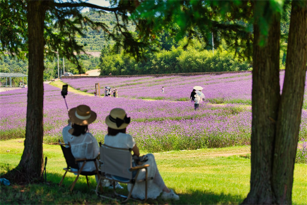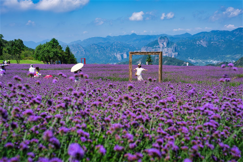 9月12日上午,在乐清市祺泰森林氧吧,大面积的马鞭草盛放引来许多游客打卡拍照。摄影: 刘伟