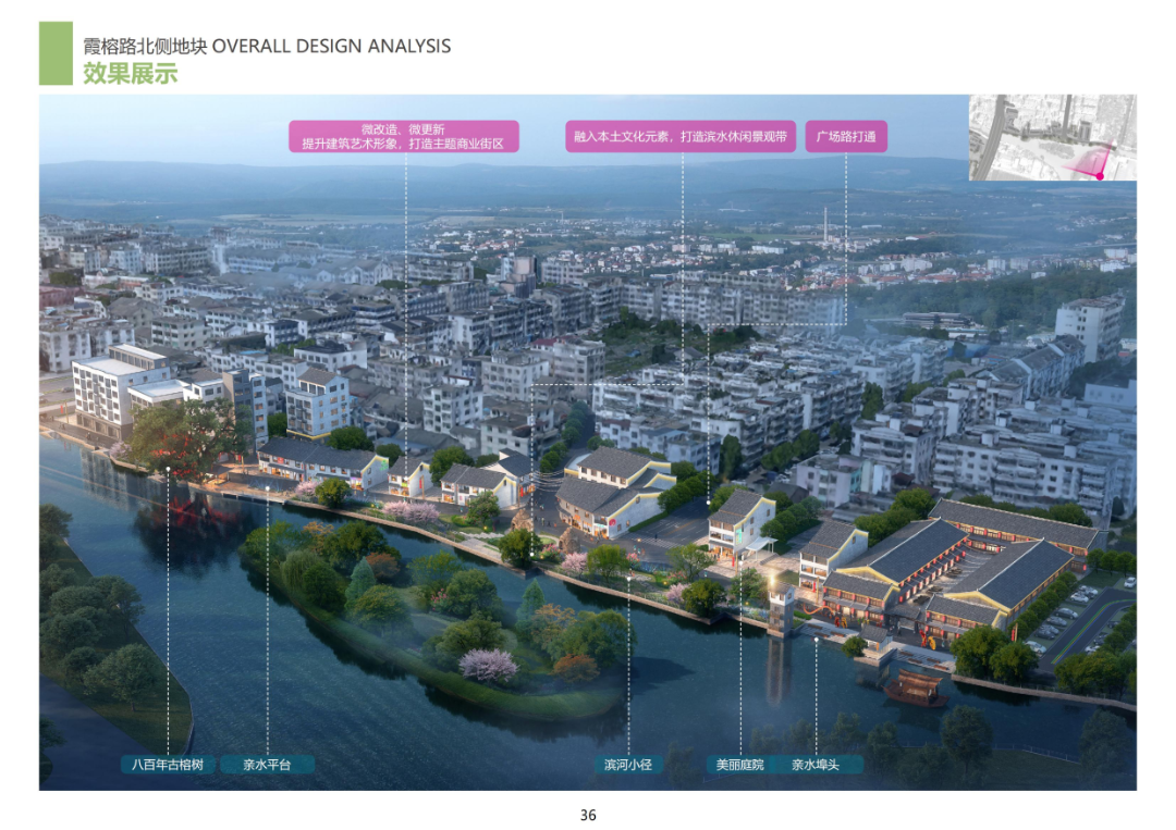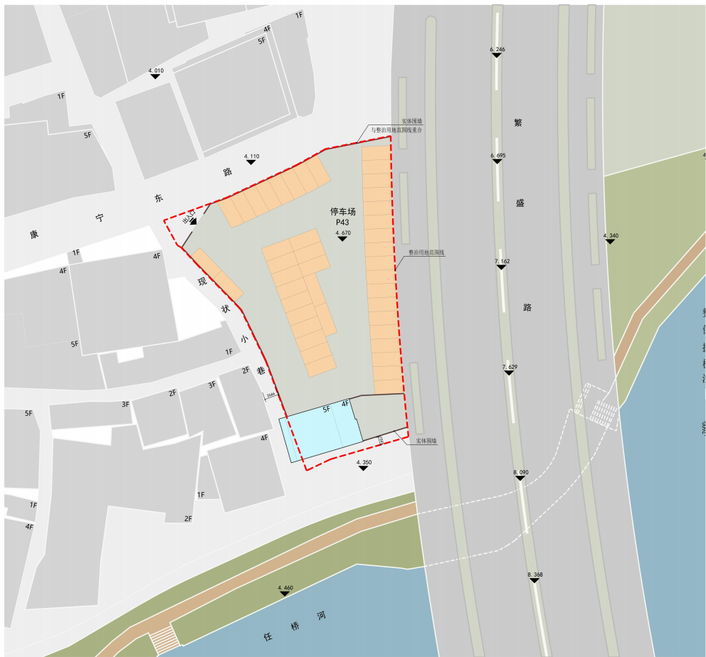 郭溪河北侧与繁盛南路西侧片区北侧紧邻居民区,南望郭溪,占地面积约为2673.05 ㎡,建筑面积约1421 ㎡,规划配套停车位34个;任桥仙门河北片与繁盛路西侧片区东临繁盛路,北至康宁东路,西侧紧邻居住区,南望任桥河,占地面积约为1662 ㎡,建筑面积约570 ㎡,规划配套停车位43个。两个区块链接园博园“繁华山海 • 诗意家园”的设计主题和温州强城行动中“城园联动” 的发展构想,以“慢城古街,旧颜新生”为愿景,以“多元文化、多型空间、多种生活方式”三维结构为基础,打造江南慢生活旅游目的地,都市特色功能区。