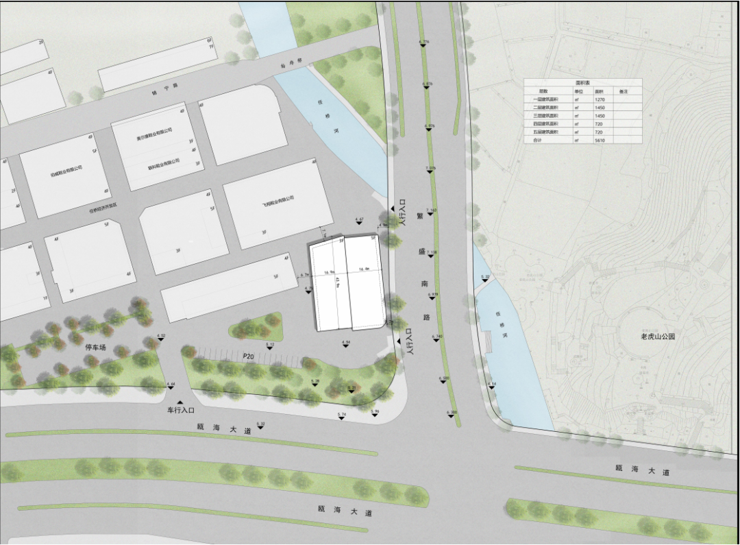 繁盛南路口工业厂房共五层,建筑面积约5610㎡,北侧、西侧紧邻任桥经济开发区,南望瓯海大道,东依老虎山公园。该区块旨在打造一个集“餐饮、休闲、公寓、商务酒店”功能于一体的多元化空间,融原有工业因素,赋现代新活力。
