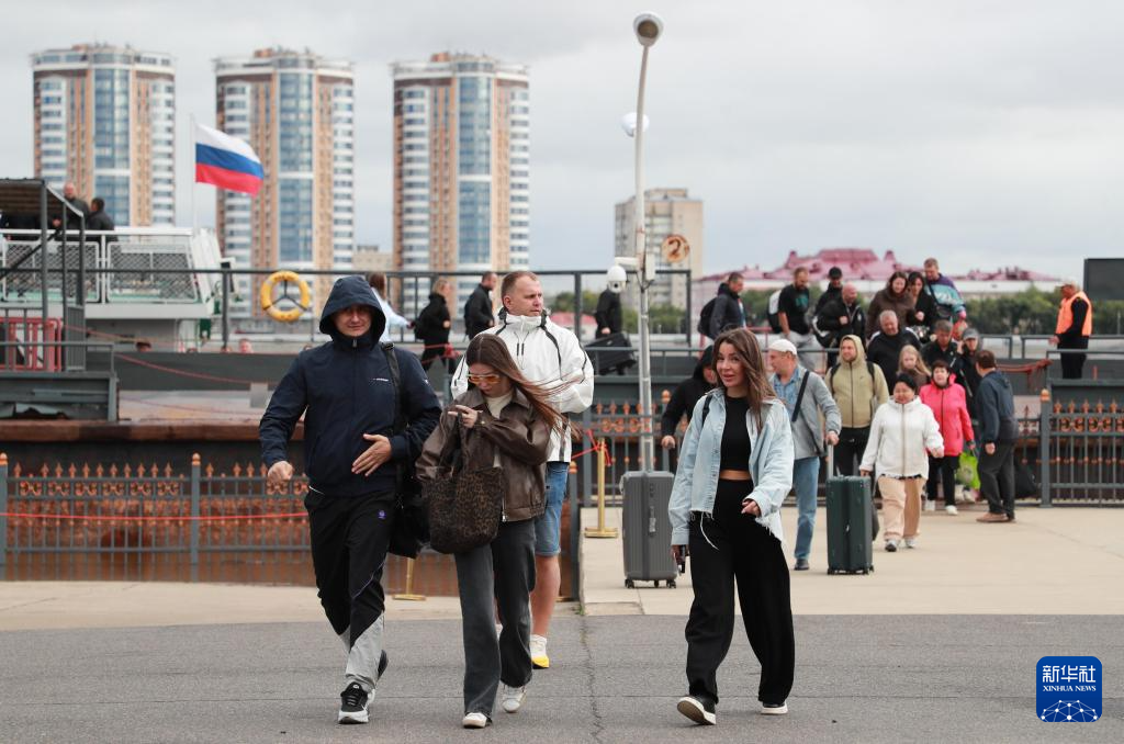 9月15日,俄罗斯免签旅客从黑龙江省黑河水运旅检口岸入境,走向联检大厅。