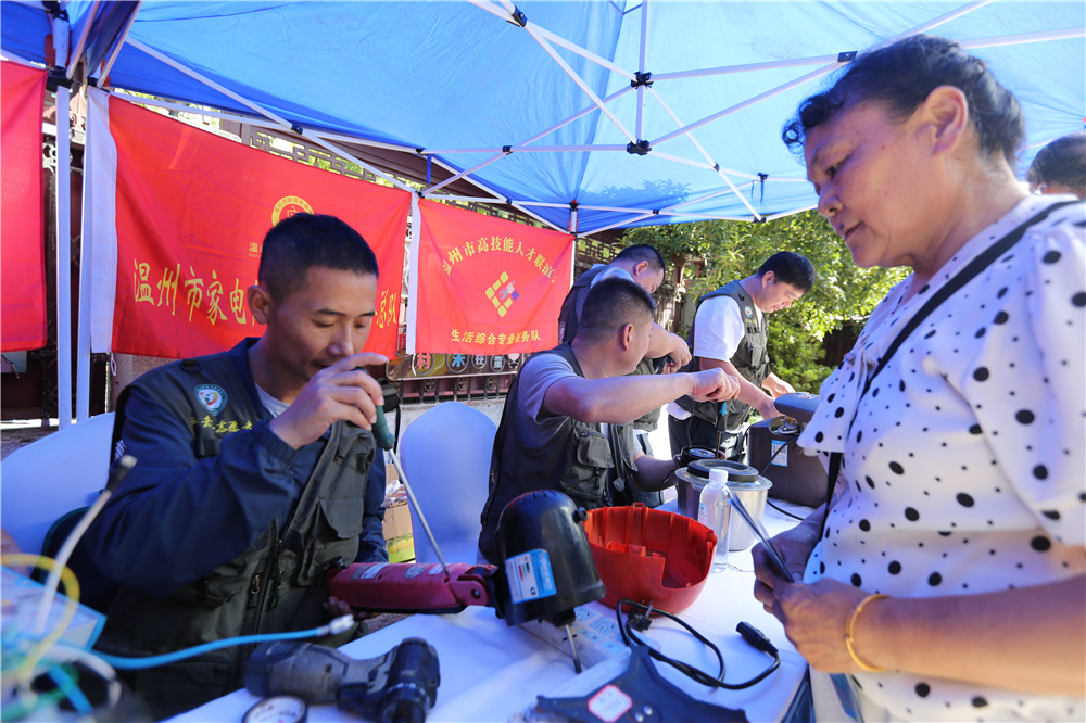 活动现场的便民服务摊位同样人气高涨,水利法制宣传、水利咨询、健康诊疗、家电维修、理发等服务一应俱全。“我这烧水壶用了好几年,前段时间突然坏了,舍不得扔,没想到今天修好又能用了!”家住附近的陈老伯开心地说。“你们能送服务来,真是太好了,谢谢你们。下一场去哪里?还来吗?”刚理完头发的张老伯领回刚修好的电饭煲,高兴地问。