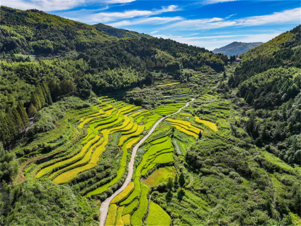 连日来,泽雅镇上潘垄、小石垟、潘庄等梯田丰收开镰。