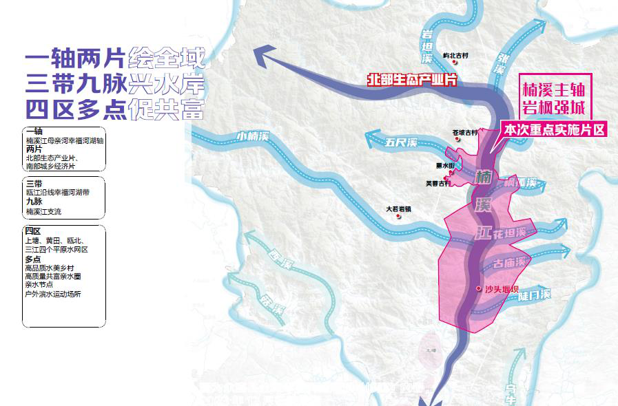 永嘉县全域幸福河湖建设方案在《永嘉县全域幸福河湖建设规划》明确的“一轴两片绘全域,三带九脉兴水岸,四区多点促共富”的基础上,立足永嘉山水特色,着墨于“瓯江山水诗路上最璀璨的一颗明珠”,围绕“以水为带 串珠成链 创建 5A 楠溪江”主题,以打造“岩枫一体文旅副中心”为重点,着重“净、亲、通、融、和”五大方面,推进楠溪江、枫孤溪、横坑溪、五尺溪等河道综合治理,以提升滨水景观品位、提高河湖管护水平、助力水岸经济发展,抓点成面、连线扩面、全域覆盖,打造幸福河湖新标杆。