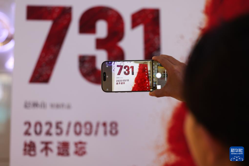9月18日,观众在河北省石家庄市一家电影院拍摄电影《731》的海报。9月18日,电影《731》全球上映。新华社发(梁子栋摄)