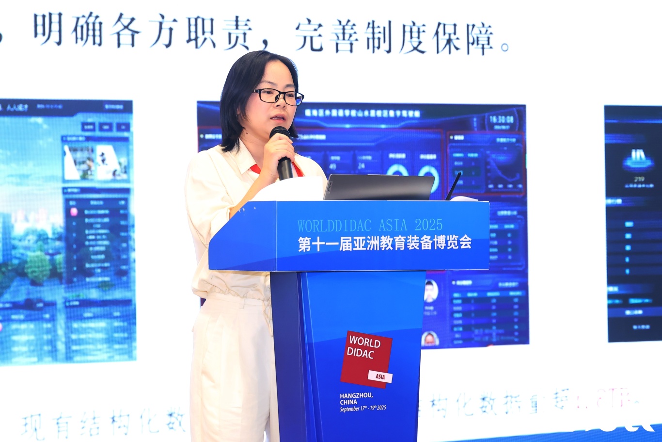 瓯海区教育技术中心副主任黄菊敏则从瓯海区域实践角度,分享人工智能如何赋能区域智慧教育生态重构。她以双向适配为主题,从“基座与赋能”“应用与场景”“治理与跃升”三个层面介绍了瓯海区构建“瓯教云”智能平台与高质量数据体系、推进人工智能与教育教学深度融合、打造数智驱动的区域教育智治生态的探索,呈现了区域整体推进智慧教育建设的“温州样本”。