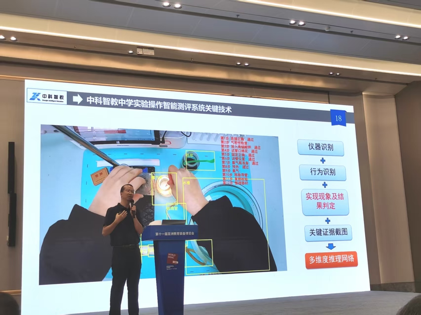 中科智教(苏州)智能科技有限公司的丁志斌聚焦中学实验教学,分享了题为《人工智能在中学实验教学及考试中的应用》。他通过实际案例,展示AI技术在实验操作评价、智能监考与个性化反馈中的具体应用,为实验教学数字化转型提供了新思路。