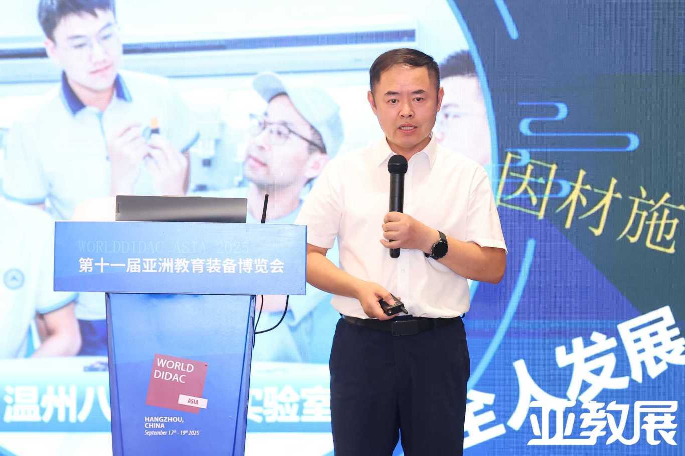 温州网讯 9月17日下午,杭州大会展中心2—201会议室,大咖云集、高朋满座。以“AI赋能教育,温州智创未来”为主题的温州AI教育智造创新研讨会在这里成功举办。本次研讨会借第十一届亚洲教育装备博览会之机,由温州市教育装备行业协会主办,旨在深入推动人工智能与教育深度融合,展示温州作为教育部“智慧教育示范区”的创建成果,为《温州市“人工智能+教育”三年行动计划》的落实聚智聚力,勾勒实施路径。