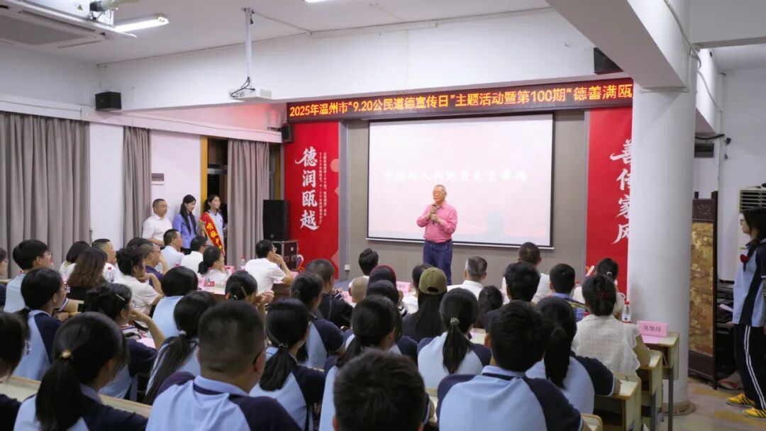 “爸爸妈妈热衷慈善,言传身教,现在我也多做一些好事。”9月17日晚,温州市啸秋中学校园内暖意涌动,瓯海区第100期“德善满瓯”讲堂活动现场,“中国好人”、温籍台胞何纪豪先生的这番朴实话语,生动诠释了“家风传承”的内涵,引来学生们热烈掌声。