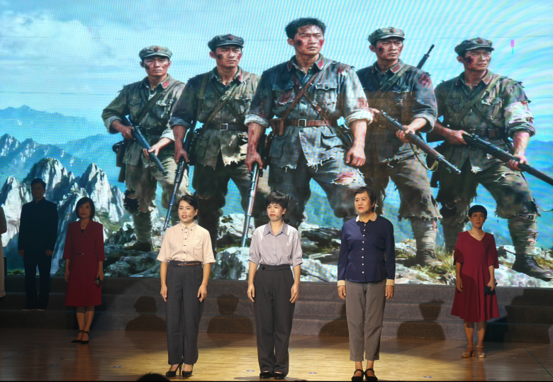 整场活动以“历史记忆”为主线,通过一系列精心编排的节目,让红色故事穿透时光、直抵人心。穆旦经典诗作《森林之魅》以深沉的语言再现战争的残酷与生命的不屈,引发现场观众对英烈的无限追思;根据温州本地抗战史料创编的《血洒莲花心》,由讲述者王素珍与表演者尤舜共同演绎,生动再现了温州地区的抗战往事,让乡土历史焕发震撼人心的力量;《山河知节:一座城的抗争与风雅》《永远的战士》等节目,则从多元视角展现了温州人民在抗战中所体现出的坚韧斗志与家国情怀。