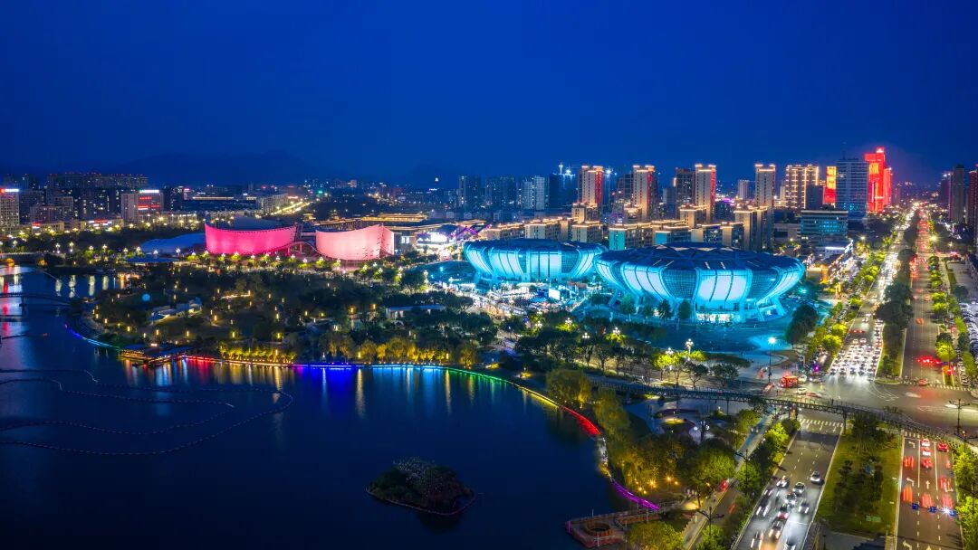 近日,苍南大剧院项目建筑外檐泛光照明灯正在调试中,室内装修也在有序进行,让这座中心湖畔的“文化船帆”在黑夜中格外璀璨耀眼。