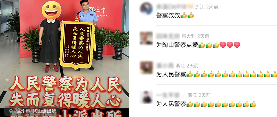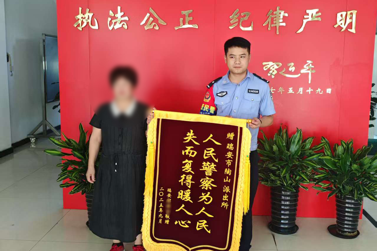 当天下午,郑阿姨特意来到陶山派出所,将一面加急制作的锦旗送到鲁超手中:“你破案这么快,我感谢也不能慢!”