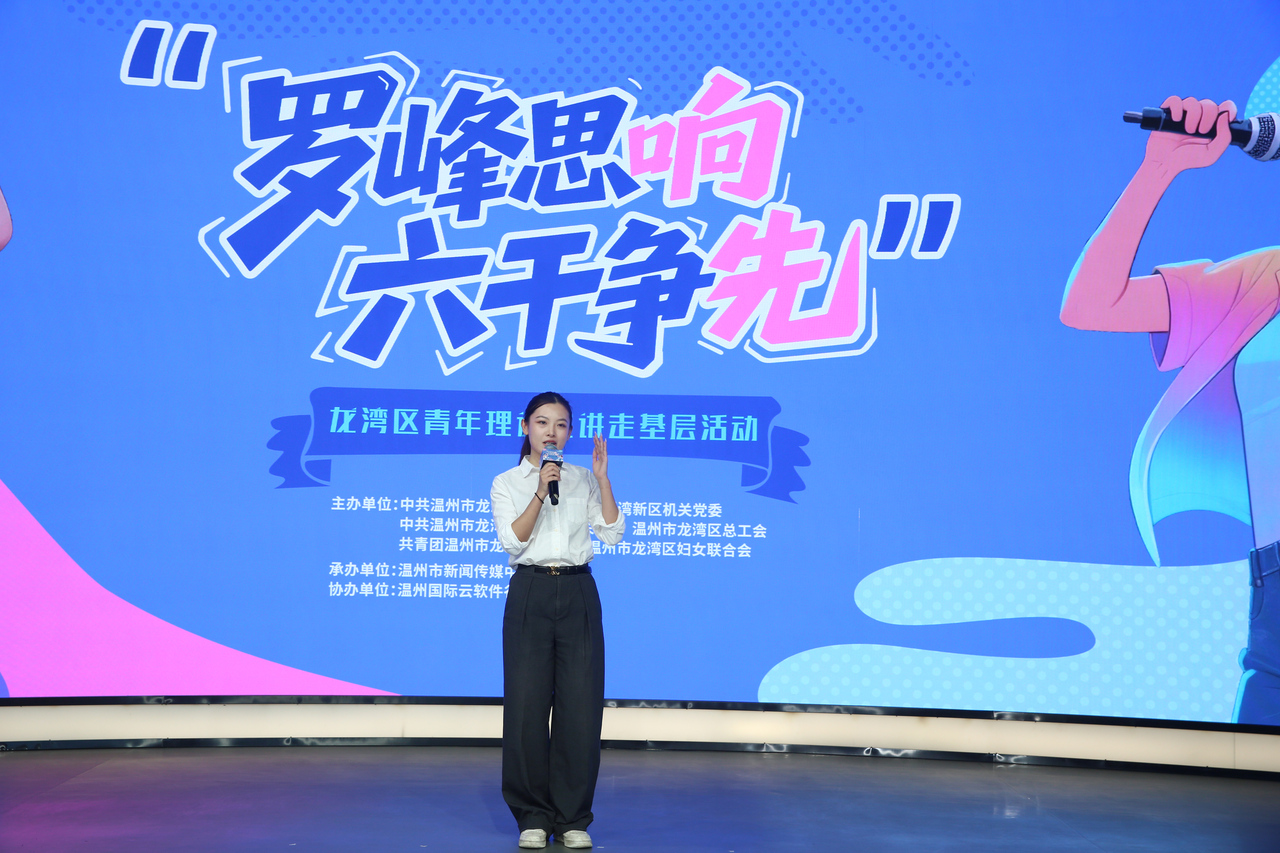 9月18日,“罗峰思响 六干争先”龙湾区青年理论宣讲走基层活动在温州国际云软件谷启动。10名来自龙湾的“90后”“00后”青年宣讲员轮番登场,将深邃的理论思考转化为鲜活生动的家常话、青春语,向现场100余名观众传递着兼具思想温度与青春活力的“理论之声”。