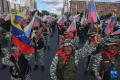 9月23日,在委内瑞拉首都加拉加斯,玻利瓦尔民兵组织成员携带武器参加游行。
