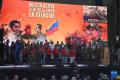 9月23日,在委内瑞拉首都加拉加斯,参加游行活动的民众和军事人员在高呼口号。