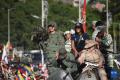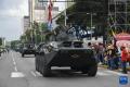 9月23日,在委内瑞拉首都加拉加斯,参加游行的装甲车辆列队行进。