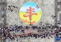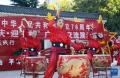 9月25日,在河南省洛阳市汝阳县刘伶广场,汝阳县牡丹艺术团在表演音乐鼓《中华魂》。康红军 摄