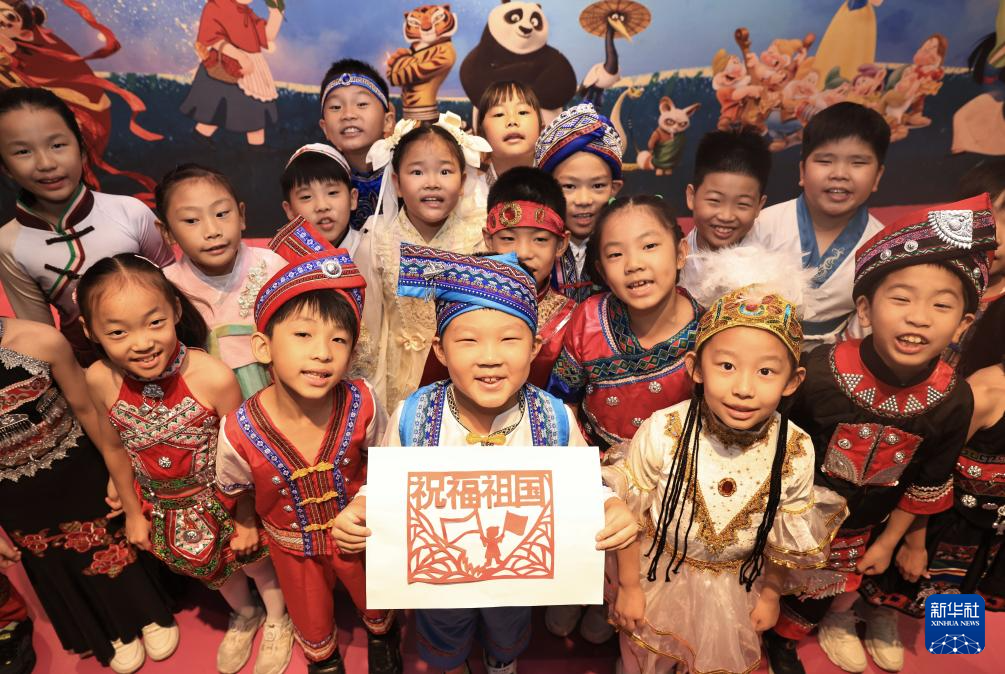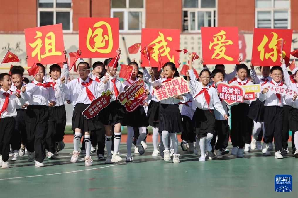 9月25日,在湖北省武汉市,未来实验小学学生开展迎国庆主题活动。赵军 摄