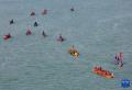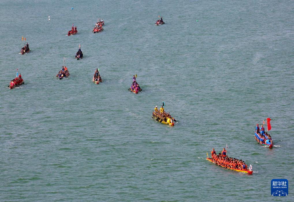 9月24日,在广西融水苗族自治县的融江河面上,龙舟队伍在角逐,喜迎国庆中秋佳节。龙林智 摄