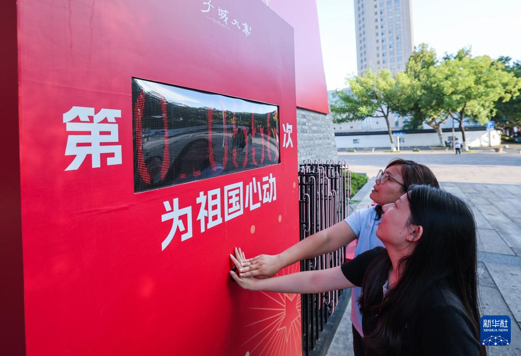 9月25日,在浙江省嘉兴市南湖区建设街道的子城城墙边,市民参加我为祖国心动打卡活动。?新华社记者 徐昱 摄