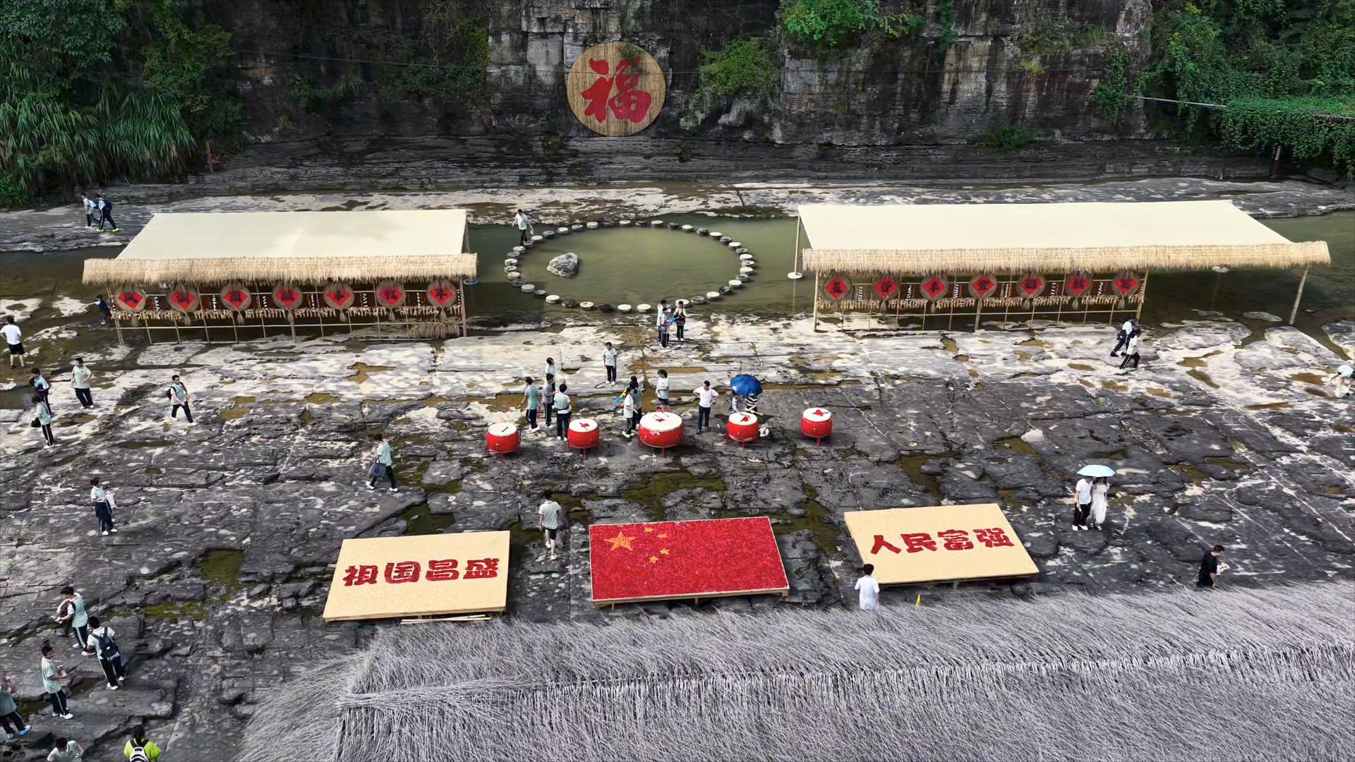 秋意正浓,9月27日,泰顺县南浦溪景区迎来了一年一度的晒秋节。当地村民和景区工作人员以大地为纸、五谷为墨,耗时月余,用创意晒秋倾心绘就丰收图景,书写告白祖国的秋日情书。