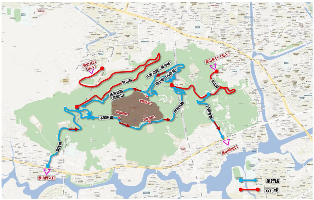 国庆中秋小长假期间,景山公园采取局部单行的交通组织方式。
