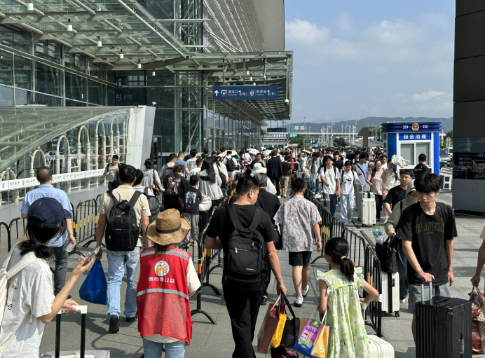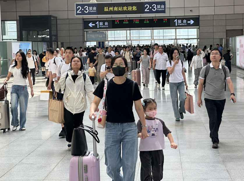 温州网讯 10月1日,随着国庆中秋长假的到来,温州南站、北站迎来出行高峰。