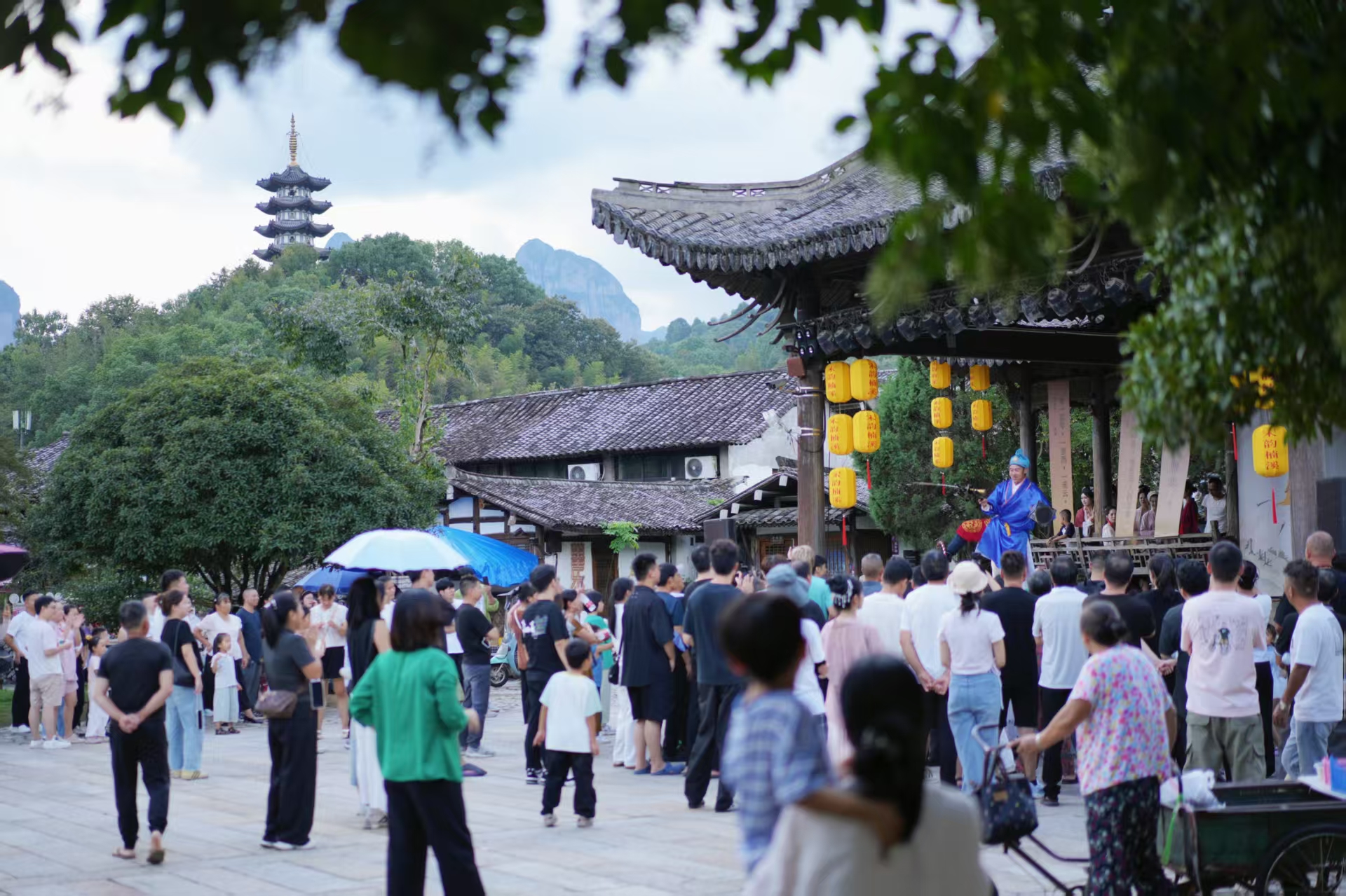 另外,此次国庆中秋长假期间,雁荡山还推出了灵岩国风大秀等经典节目,并增加多场真人NPC互动表演,让游客在山水间享受一场场视觉与文化的盛宴。其中,灵岩国风大秀围绕“中华文明的瑰丽画卷:从历史探索到精神家园”展开,展现中华大地的壮美山河、深厚的历史文化积淀、文人的精神追求、盛世的繁华气象以及超越时空的真挚情感。