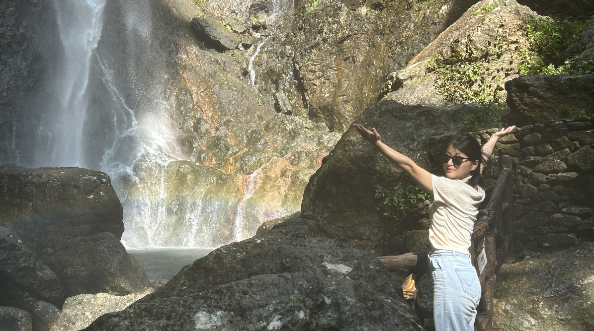 手舞一面小红旗,脸贴一颗“爱国心”,国庆假期首日,在雁荡山景区,来自五湖四海的游客和景区职工共同唱响祖国生日赞歌。大龙湫重现“天下第一瀑”的恢弘气势,游客们在飞溅而下的瀑布下合影,与满袖盈芳的卖花郎、国风仕女们互动,开启一场关于传统服饰与现代审美的奇妙之旅。