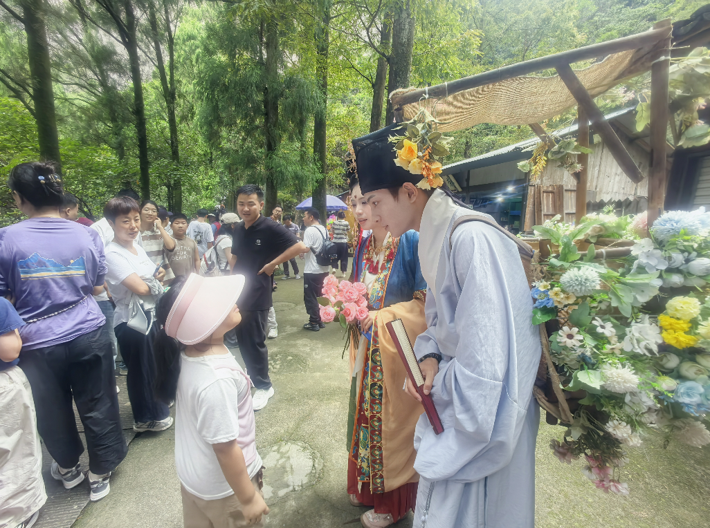 游客在大龙湫景区与国风NPC互动。杨平琴 摄
