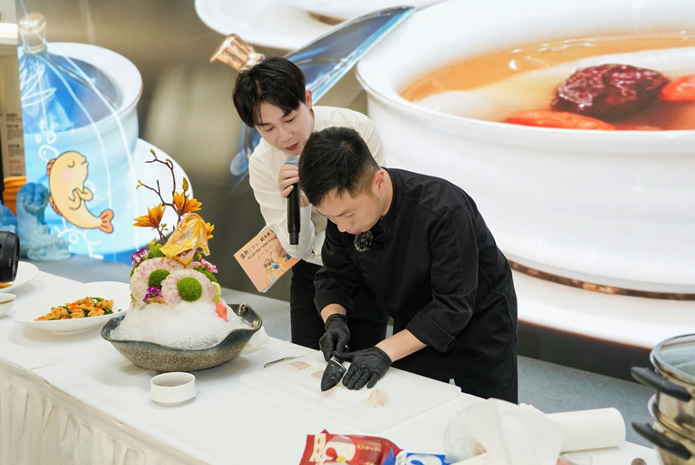 本次温州专场活动由温州市农业农村局主办,洞头、瑞安、平阳、苍南等四地农业农村局联袂承办,围绕“高质引领,东海追鲜”的主题,通过多元环节全方位展现温州大黄鱼产业的资源禀赋、科技实力、生态模式、高端品质、文化底蕴与品牌形象,融合产业推介宣讲、养生专家访谈、脱口秀演绎、厨艺展示试吃与游戏互动体验,打造了一场集视觉、味觉、听觉与知识于一体的产业盛宴,吸引众多嘉宾与杭州市民共同见证这场瓯越鲜味之旅。