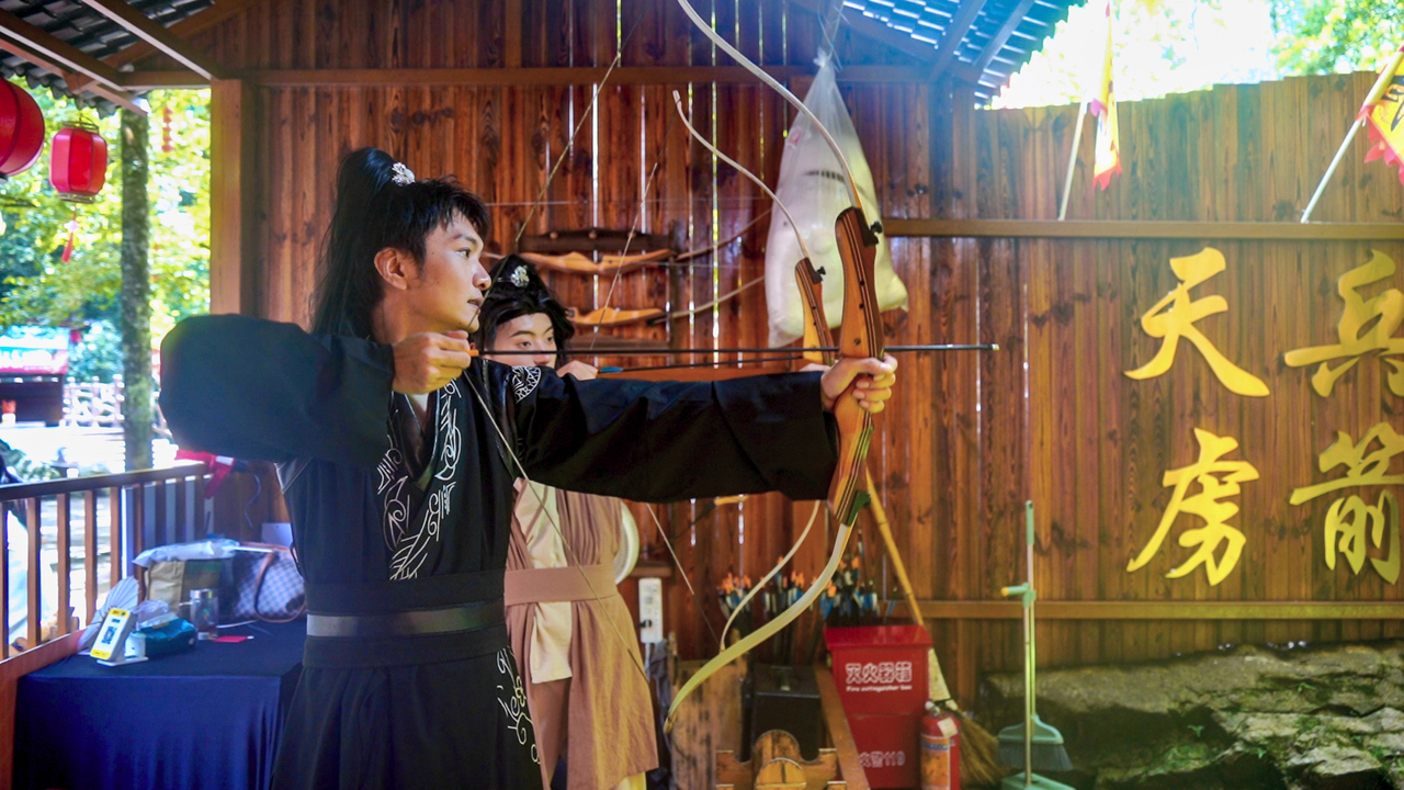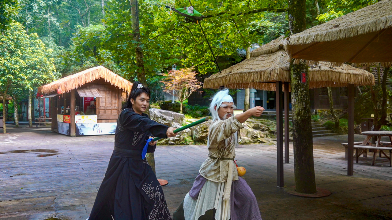 梅超风带我练九阴真经,郭靖教我弯弓射箭,洪七公传我打狗棒法……这个假期,文成百丈漈景区武侠大会开启了金庸武侠周活动,通过场景复刻、剧情互动、武打演绎等多种形式,让游客秒入江湖。