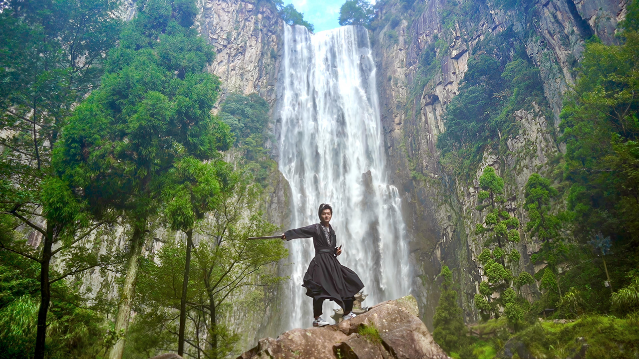 闯入金庸武侠是什么体验,主播在百丈漈秒入江湖学“武功”