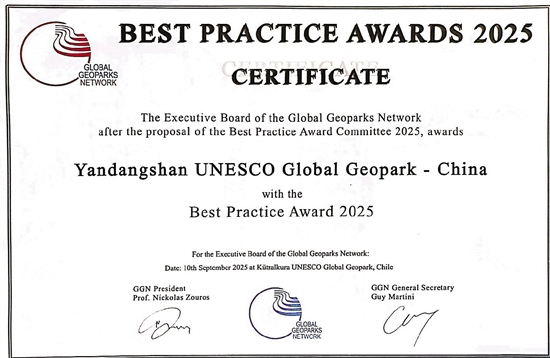 雁荡山世界地质公园获“世界地质公园最佳实践奖”证书。 受访者供图