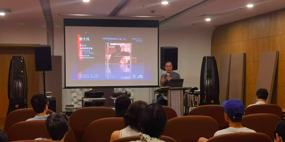 首场“致十月 To October”在悠扬的古典旋律中开启。六楼音乐会客厅里,诗人郑亚洪带领观众走进肖斯塔科维奇《第七交响曲》的世界,与诗歌《未解放的灵魂》交织碰撞,让音符与文字在空间中对话,开启一场心灵的共鸣之旅。现场听众沉浸其中,在音乐与诗的双重滋养下,感受艺术直击人心的力量。