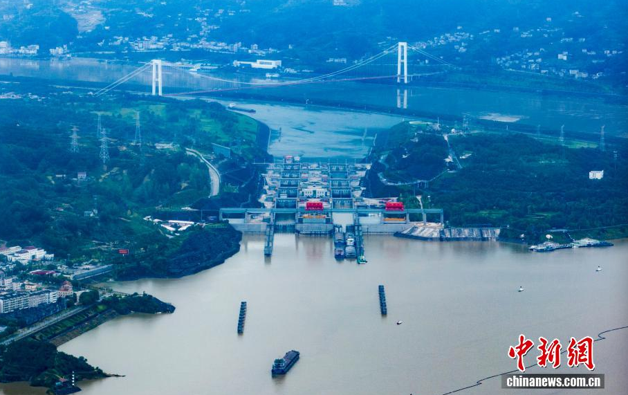 2025年前三季度,三峡枢纽累计通过量达12832.18万吨,同比增长11.15%。三峡船闸和三峡升船机作为三峡水利枢纽工程永久通航建筑物,二者优势互补、联合运行,形成了“大船爬楼梯、小船坐电梯”的独特通航格局,充分释放航运效能,助力长江黄金水道发挥“黄金效益”。图为10月3日,船舶有序通过三峡船闸和三峡升船机。(无人机照片)
