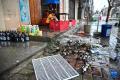 10月5日在海南省文昌市翁田镇一家商店外拍摄的在台风中被吹倒打碎的啤酒瓶。今年第21号台风“麦德姆”已于10月5日14时50分前后在广东省湛江市徐闻县东部沿海登陆。5日下午到夜间,海南岛西北半部地区仍有强风雨天气,文昌陆地阵风12至14级。新华社记者 蒲晓旭 摄