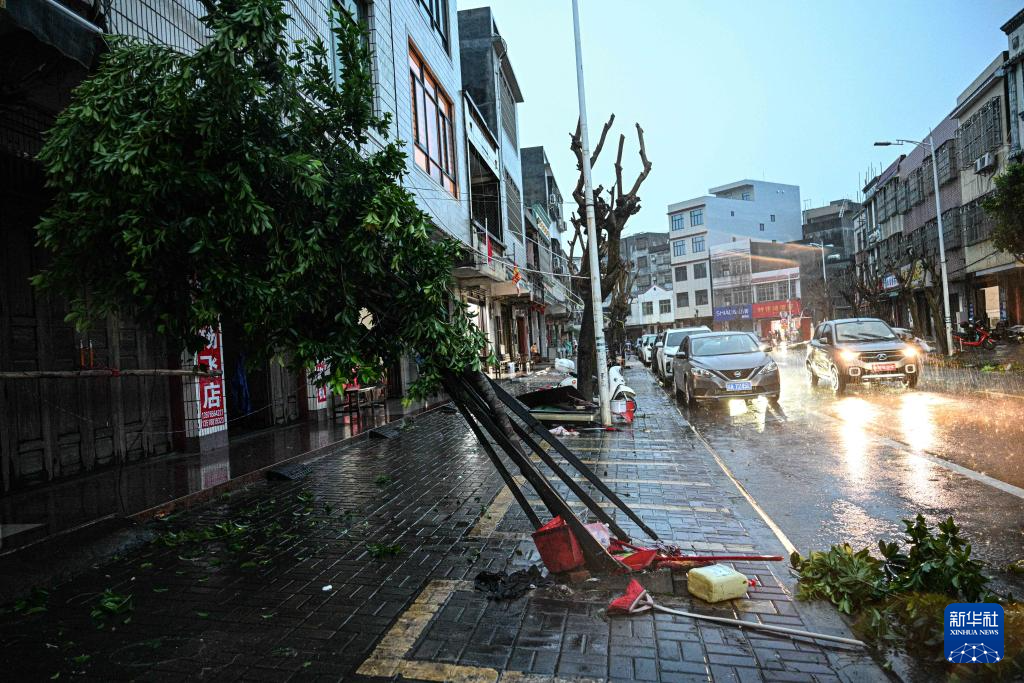 ?10月5日在海南省文昌市翁田镇拍摄的台风中倒伏的树木。