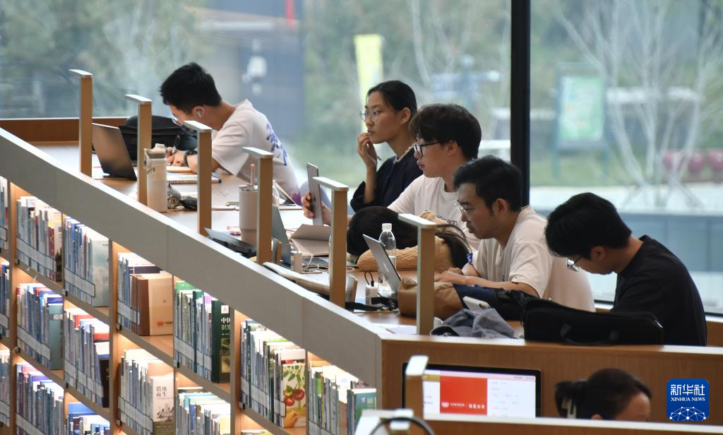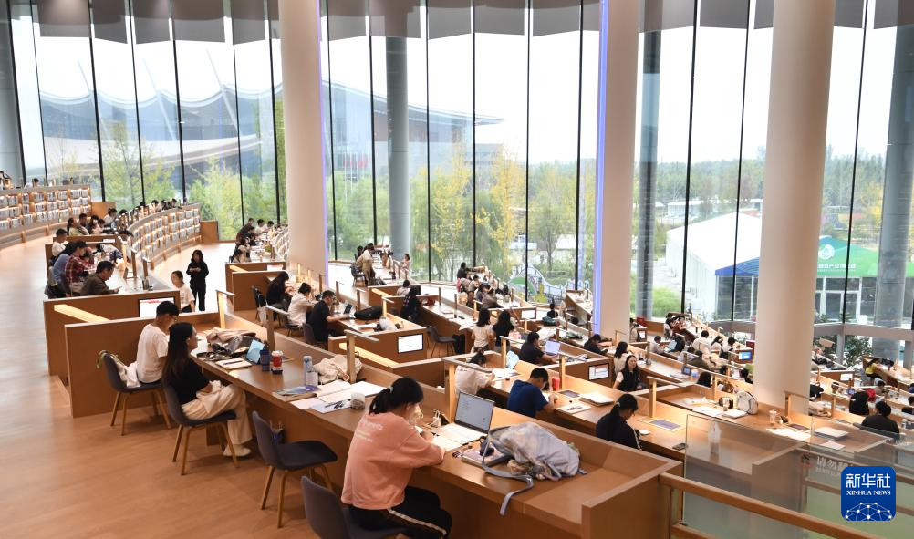 10月5日,市民在北京城市图书馆内读书。国庆假期,市民来到北京城市图书馆读书学习,在书香和静谧中度过假期。新华社记者 李欣 摄