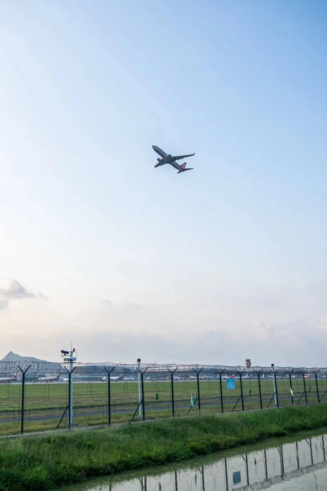 飞机与稻田,来此赴一场与秋天的约会。永兴农业园区的稻田尚未完全变黄,隐约的金黄中带着些许青涩的绿。一旁便是温州龙湾国际机场,飞机从稻田上空呼啸而过,近距离随手一拍,飞机打卡、稻田留影双倍满足!让我们静静等待稻田变成黄澄澄的那天吧~