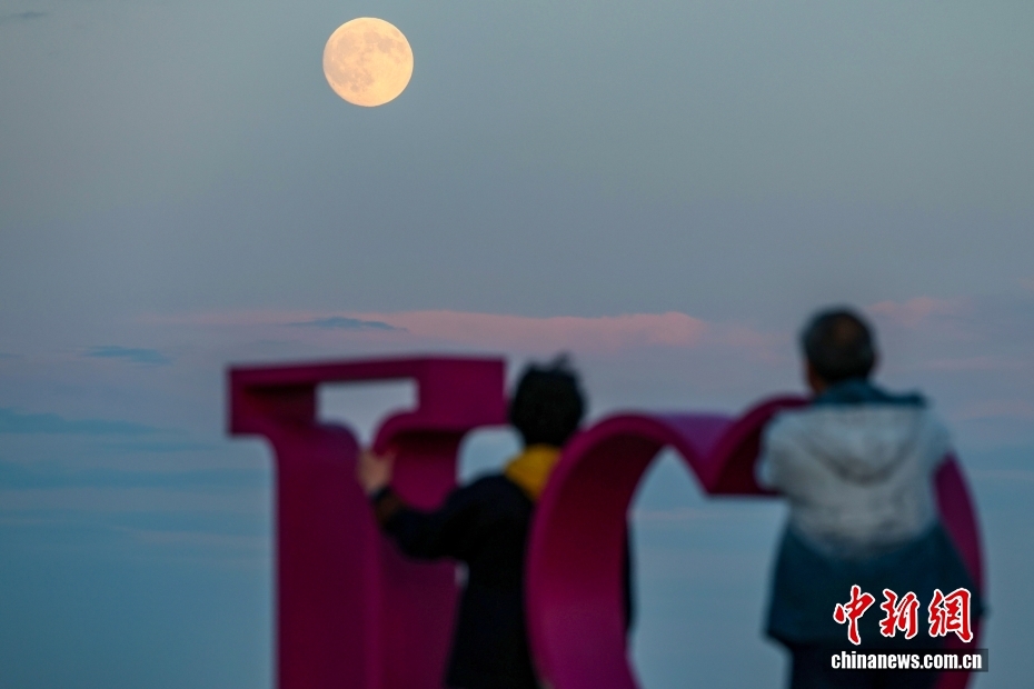 10月6日,中秋节,辽宁省东戴河“海上生明月”景观吸引游客观赏。中新社发 毛建军 摄