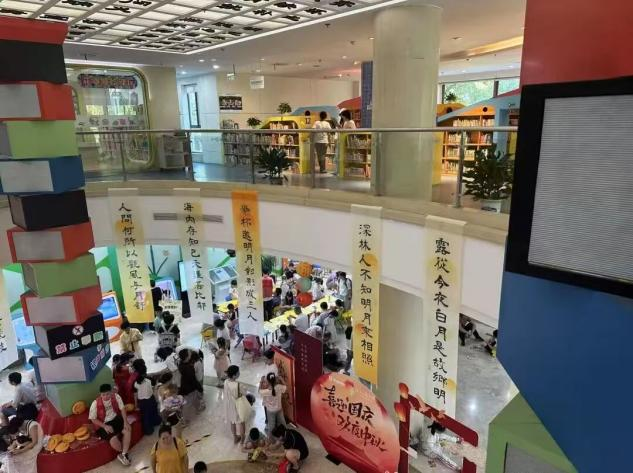 在少儿馆(园西巷)举办的“秋韵华章·趣味丰收”亲子游园会,活动当天吸引了超过1200人参与。现场除设置“巧钓月饼”“玉兔投壶”“手作花灯”等趣味游戏环节外,还设有“文化寻踪”“英语剧场”“科探实验”“心理驿站”等知识体验板块。从9:00到16:00,家长和孩子们穿梭在一个个互动环节中,在游戏中畅享欢乐,在知识里汲取养分。