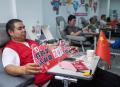 家住龙湾区的志愿者黄瑞伟在捐献血小板。 10月8日,温州红十字博爱应急献血服务队赶在国庆长假的最后一天,号召志愿者无偿献血,以此来作为假期最有意义的一天。余日迁 摄影报道