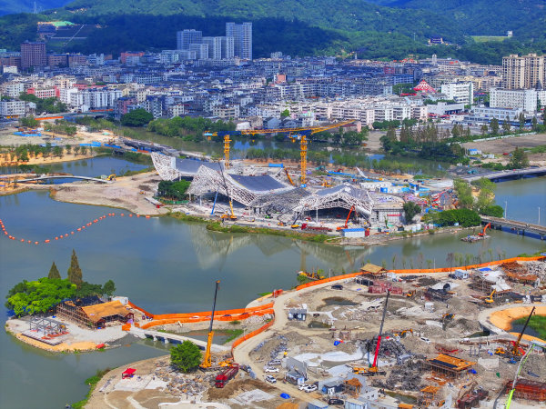 空中俯瞰看建设中的温州园博园。苏巧将 蔡温瑞 摄