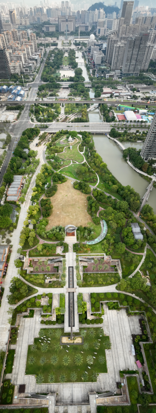 2016年9月,温州世纪公园整体开园。历经九年发展,温州世纪公园已超越传统园林功能,成为激活整个中央绿轴区块的核心引擎。这条绿色中轴线如同一根红线,将绣山公园、行政中心、世纪广场、三垟湿地等有机串联,形成一条山、水、湿地、城相融的纵向城市轴线连贯画卷。