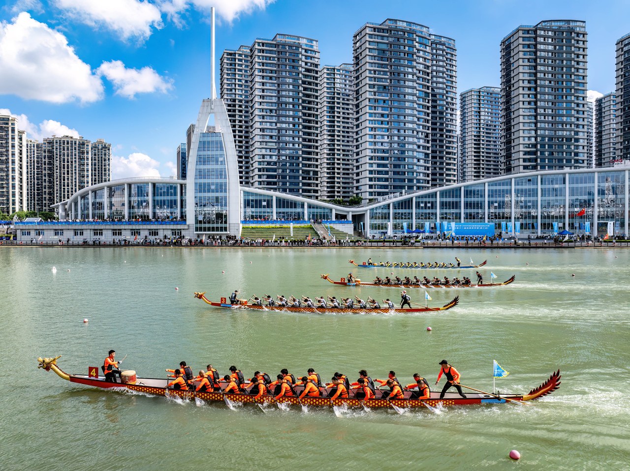 第四次,2023年承办杭州亚运龙舟赛事,为中心区南向发展开辟了新路径。为争取此次机遇,瓯海区规划建设龙舟湖,仅用3个月完成场馆周边工厂、住宅拆迁腾空,加速建成高规格、高标准的龙舟场馆和赛道。随着赛事落户,不仅让瓯海首次登上国际舞台、展示在全球聚光灯下,也让该区实现从“魅力新城”到“亚运新城”的转变。