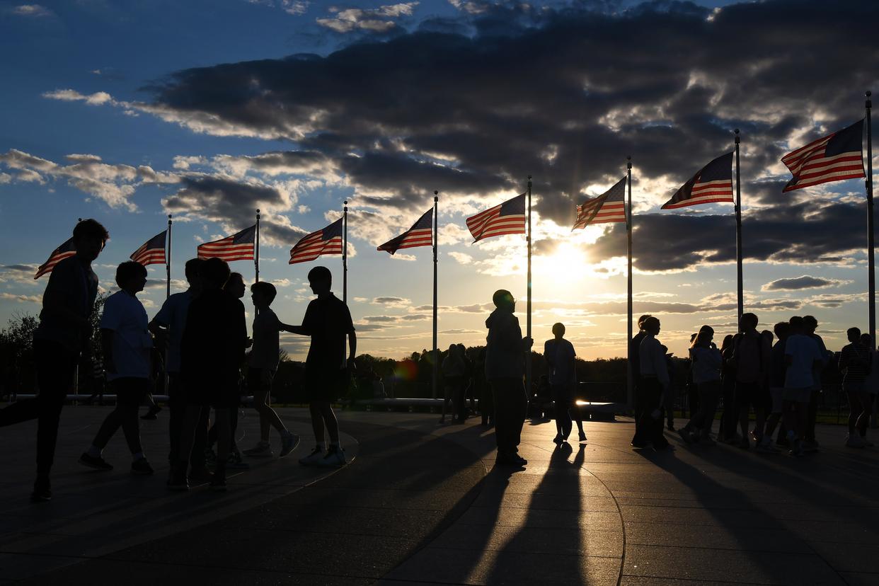 10月8日,在美国华盛顿,人们聚集在华盛顿纪念碑前。新华社记者李睿摄