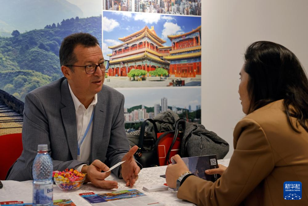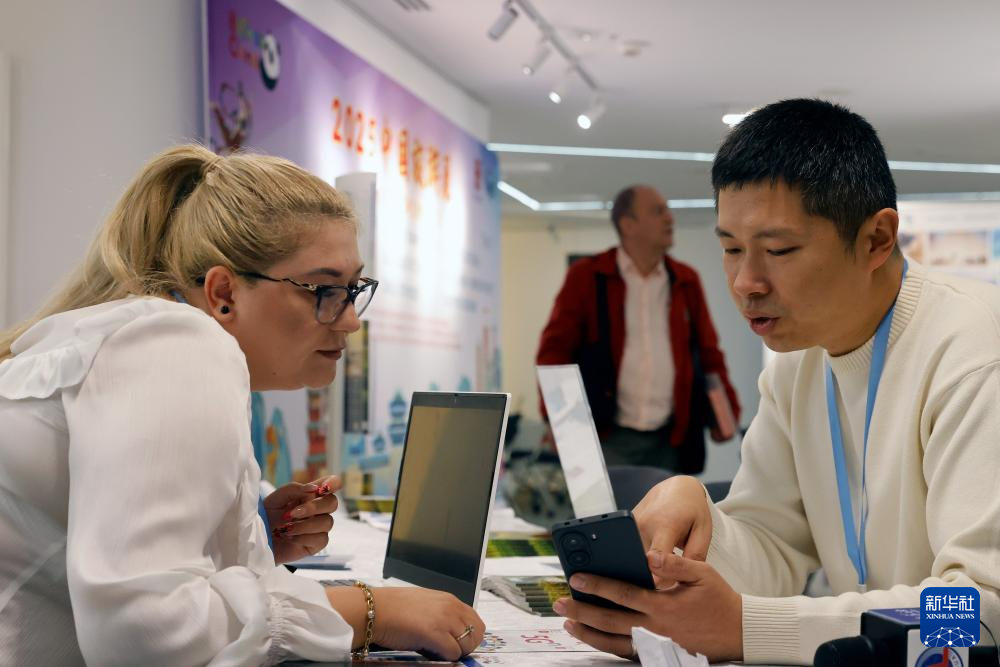 10月10日,在罗马尼亚首都布加勒斯特,中罗双方旅游从业者相互交流。