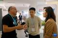 10月10日,在罗马尼亚首都布加勒斯特,一名参观者在展台前咨询。