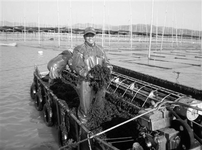 养殖户老林小心翼翼地捧起紫菜,紫黑色的叶片在阳光下泛着油亮的光泽,“瞧瞧这色泽,这厚度!放在十年前,想都不敢想。”
