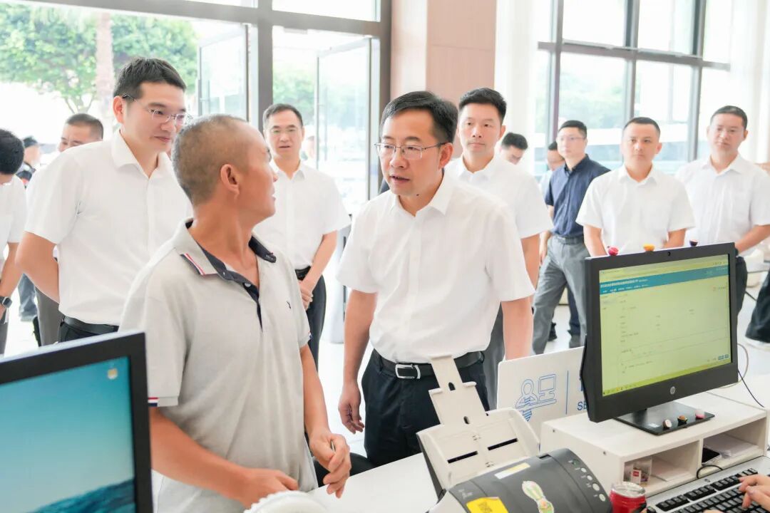 李坚来到瑞安市社会治理中心,实地察看中心的功能布局与运行现状。在综合受理区,综合窗口一窗受理来访群众诉求,劳动争议、涉法涉诉、法律咨询等专业模块服务室一字排开,部门工作人员、专业社工和律师在此联合办公,为群众提供“一站式”服务。李坚指出,要真正把中心打造成解决群众诉求的“终点站”,实现从受理到办结的闭环治理,让老百姓遇到问题能有地方“找个说法”。